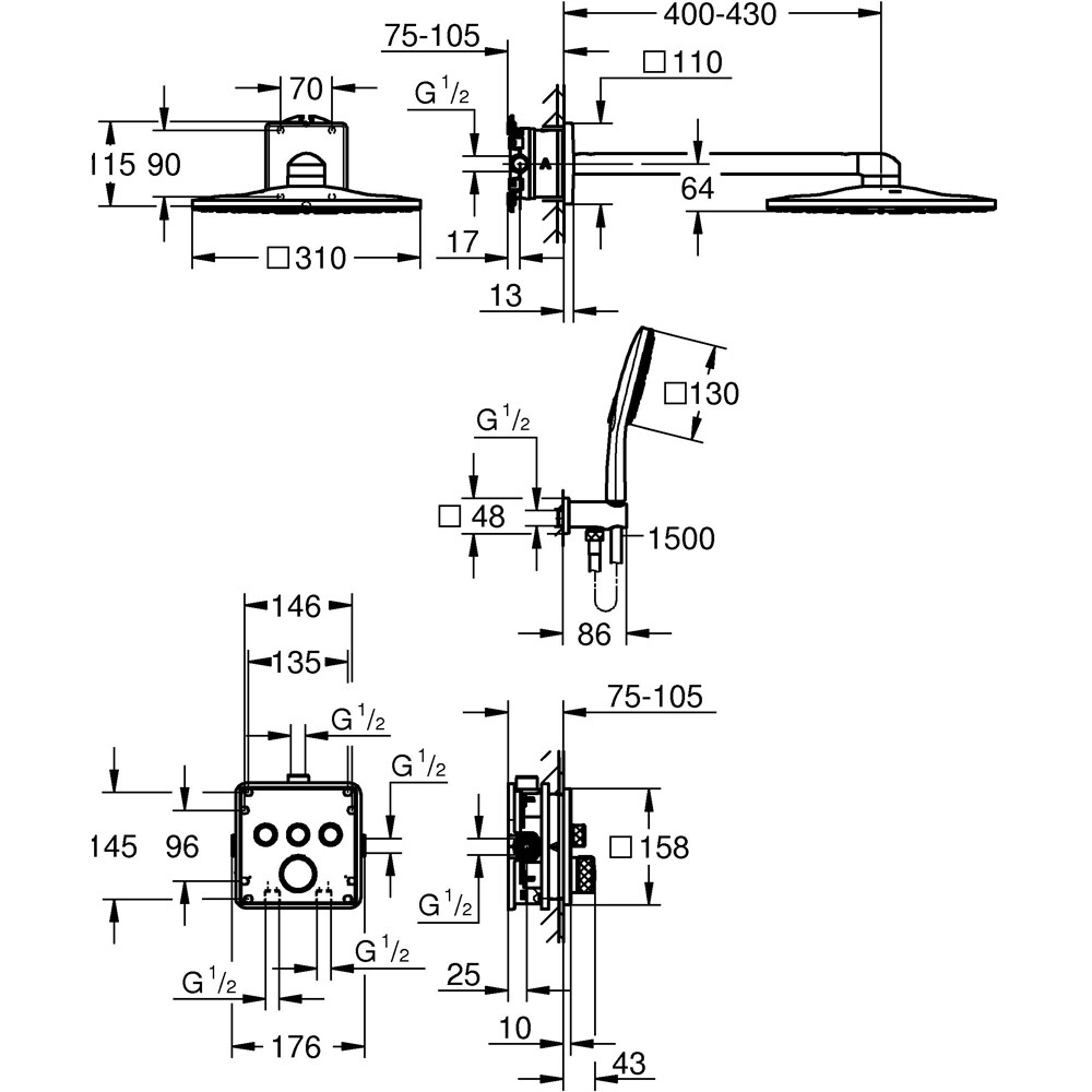 Sistem dus GROHE SmartControl Cube 310 34864000, termostat, 3 functii, crom