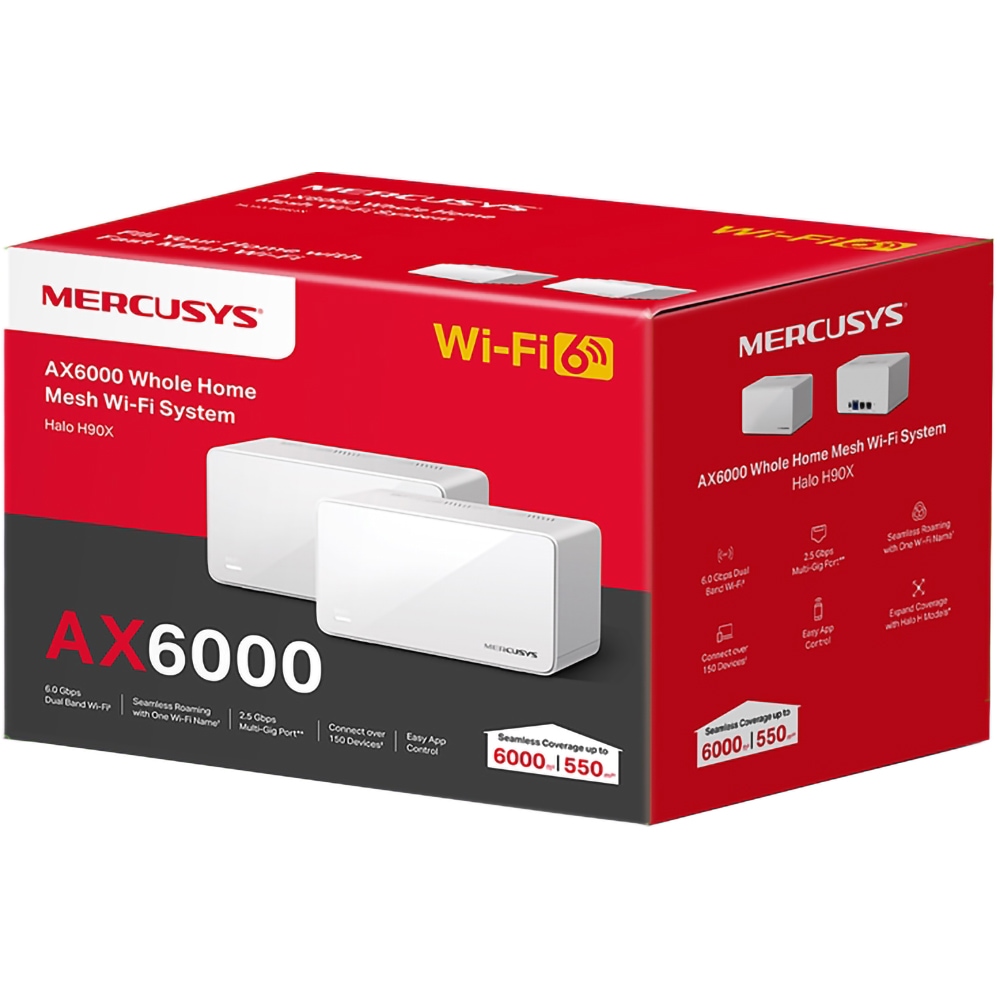 Sistem Wi-Fi Mesh MERCUSYS Halo H90X AX6000, Wi-Fi 6, Dual-Band 1148 + 4804 Mbps, 2 buc, alb