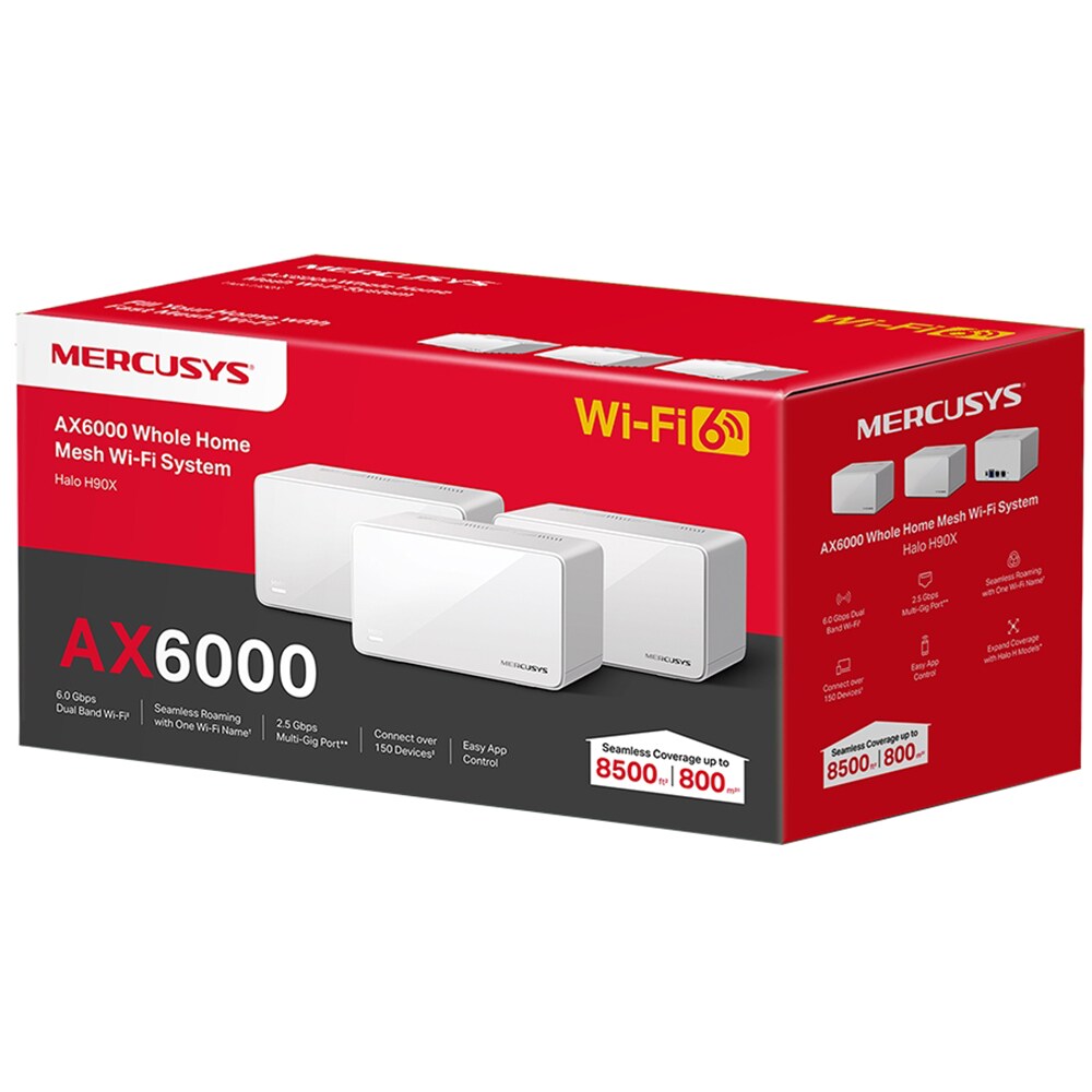 Sistem Wi-Fi Mesh MERCUSYS Halo H90X AX6000, Wi-Fi 6, Dual-Band 1148 + 4804 Mbps, 3 buc, alb