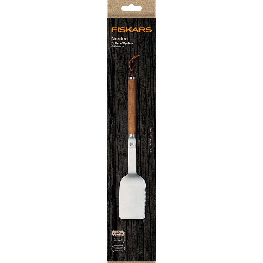 Spatula pentru gratar FISKARS Norden, 44.4 cm, otel inoxidabil si lemn, argintiu/maro