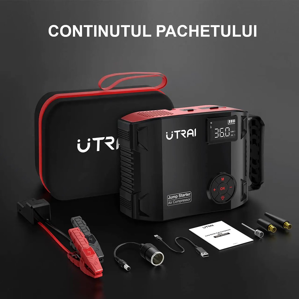 Starter auto UTRAI Jstar 5, 12V, 2500A, 27000mAh, USB, compresor, lanterna, negru