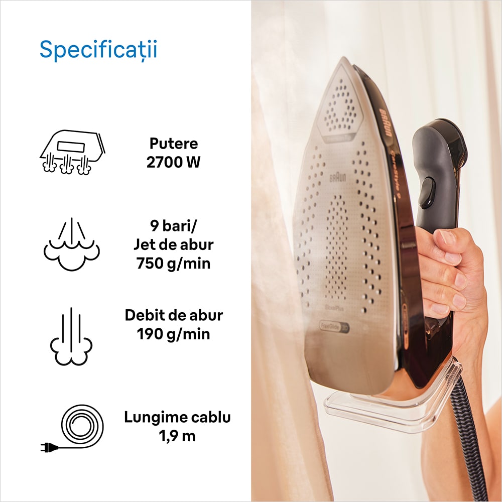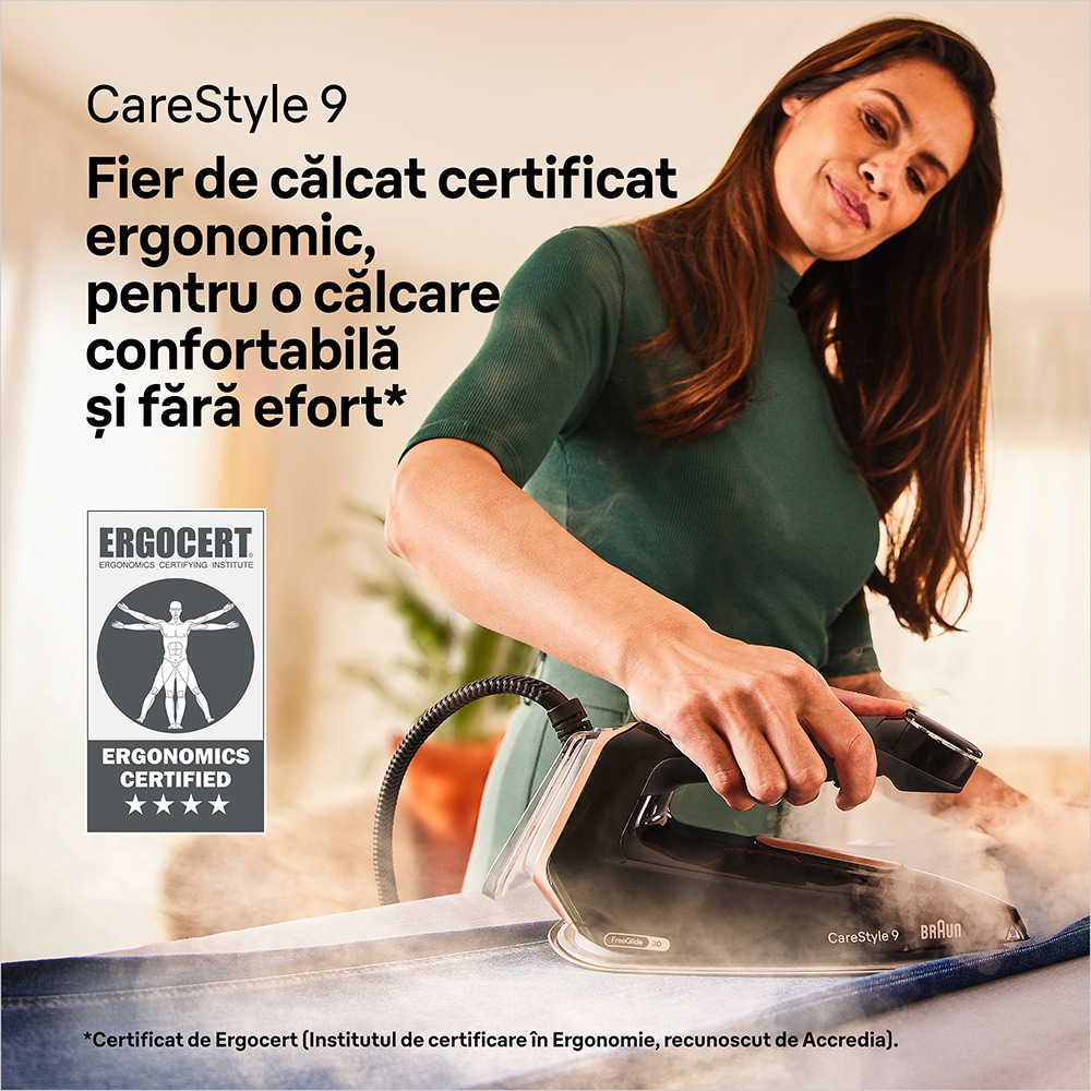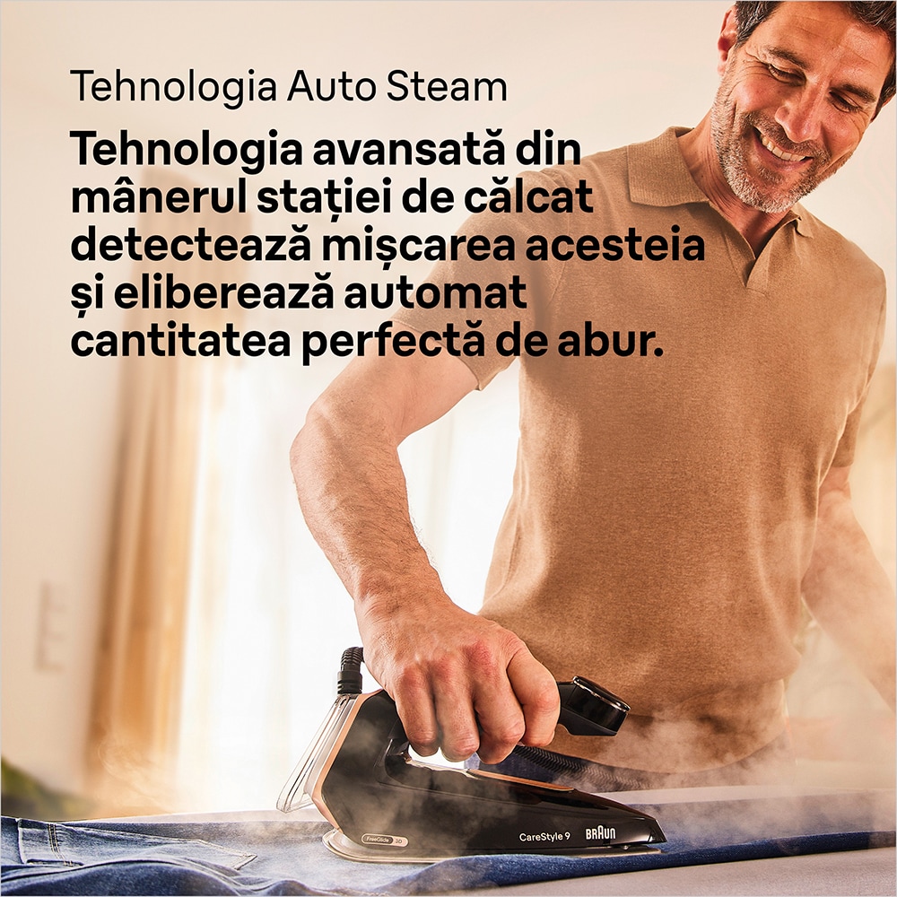 Statie de calcat BRAUN CareStyle 9 IS9090BK, 2700W, 750g/min, 2l, talpa Eloxal Plus, negru-auriu