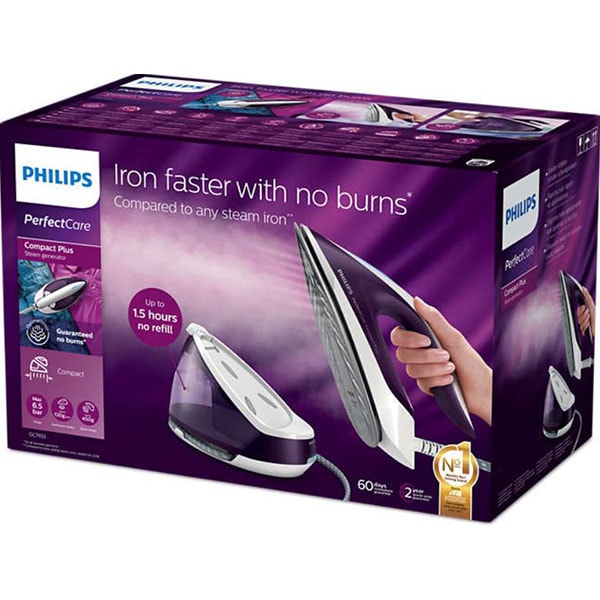 Statie de calcat PHILIPS GC7933/30 PerfectCare Complact Plus, 2400W, 120g/min, 1.5l, talpa SteamGlide Plus, alb-mov