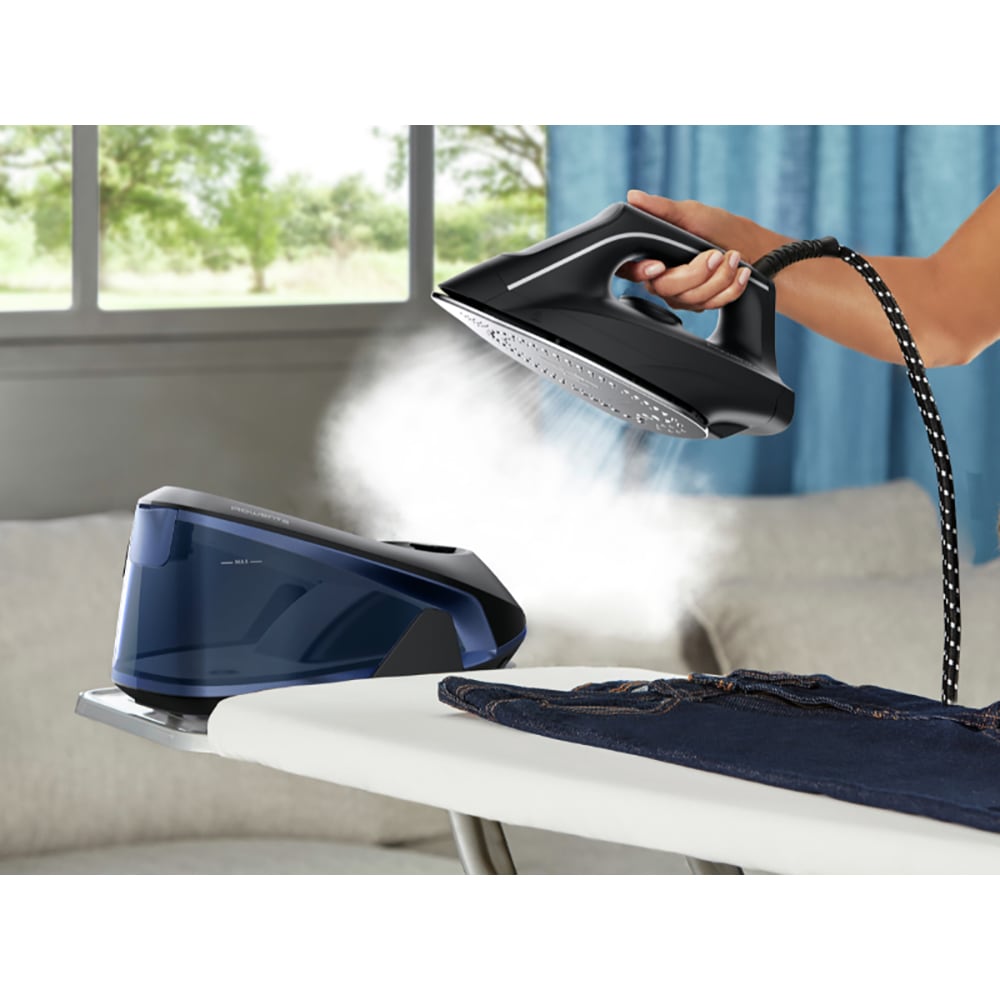 Statie de calcat ROWENTA Easy Steam VR5121F0, 2400W, 230g/min, 1400ml, talpa AirGlide Inox, albastru inchis-negru