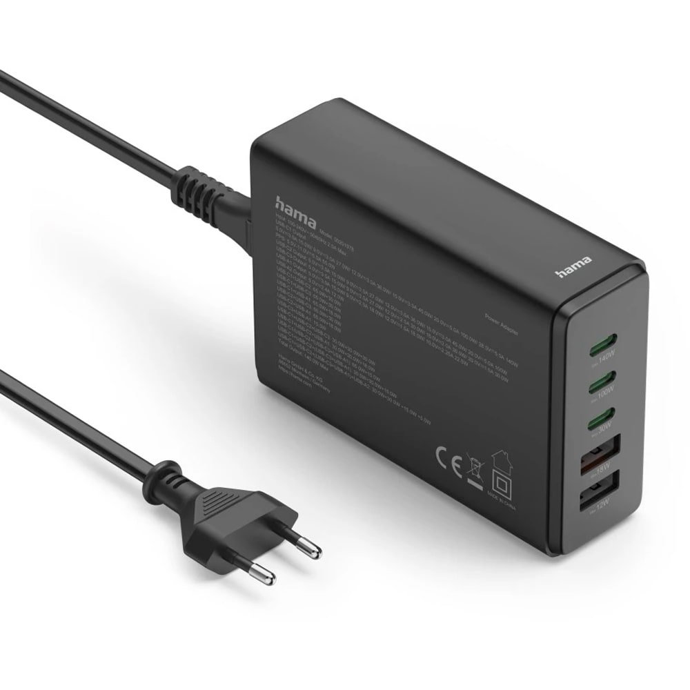 Statie incarcare HAMA 201978, 3x USB-C Power Delivery (PD) 140W, 2x USB-A, negru
