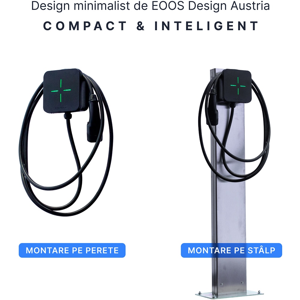 Statie incarcare masini electrice LEKTRI.CO One, monofazat 7.4kW, 32A, Type 2, cablu 5m, Wi-Fi, negru