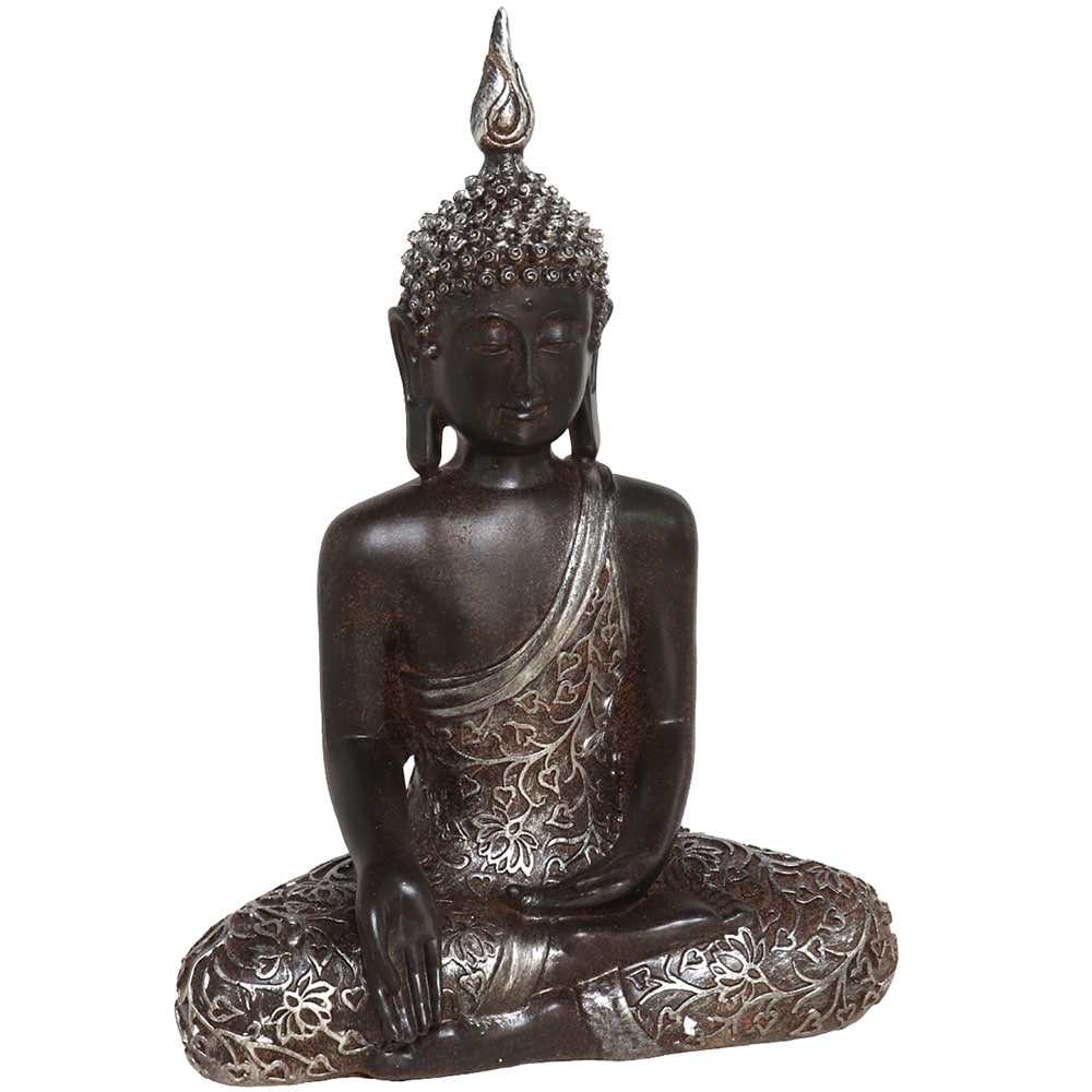 Statueta decorativa Buddha Disha, rasina, 12 x 23 x 32 cm, negru
