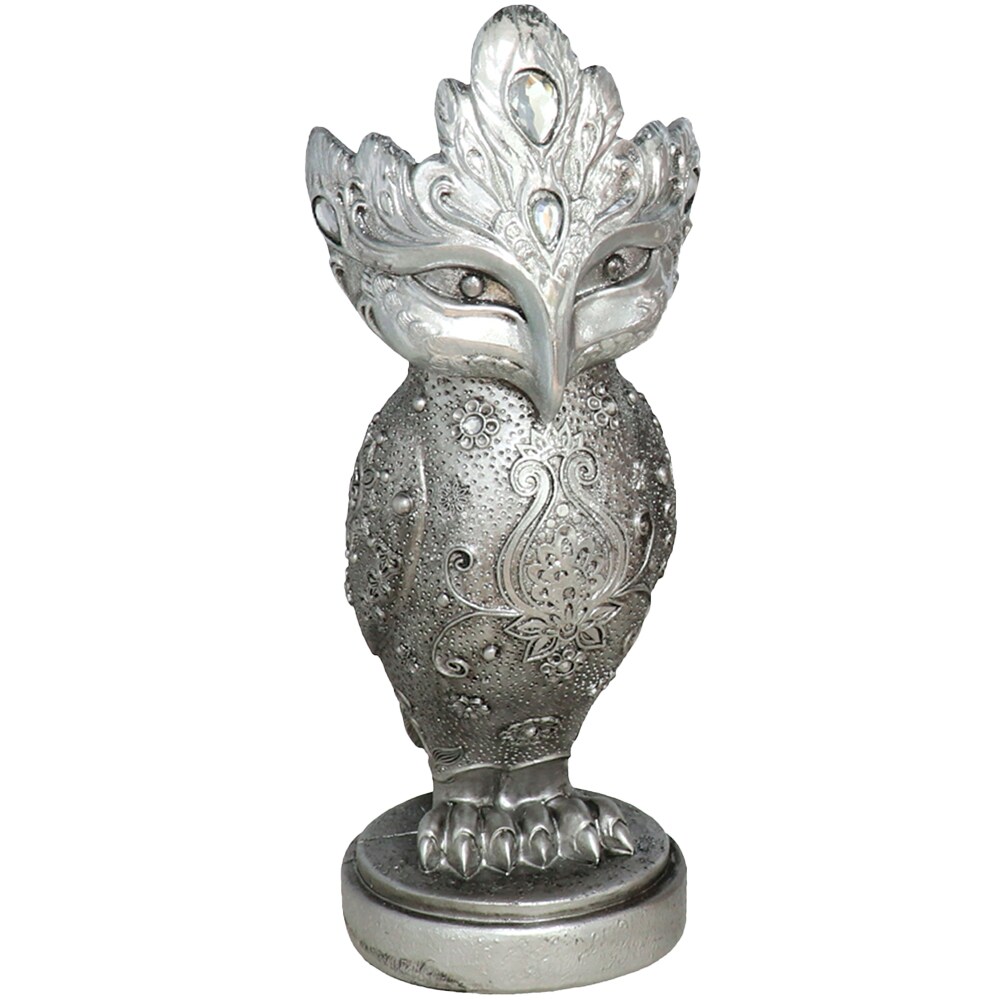 Statueta decorativa Bufnita, rasina ABS, 11 x 13 x 28 cm, argintiu
