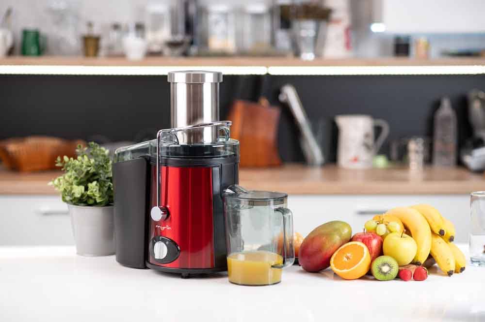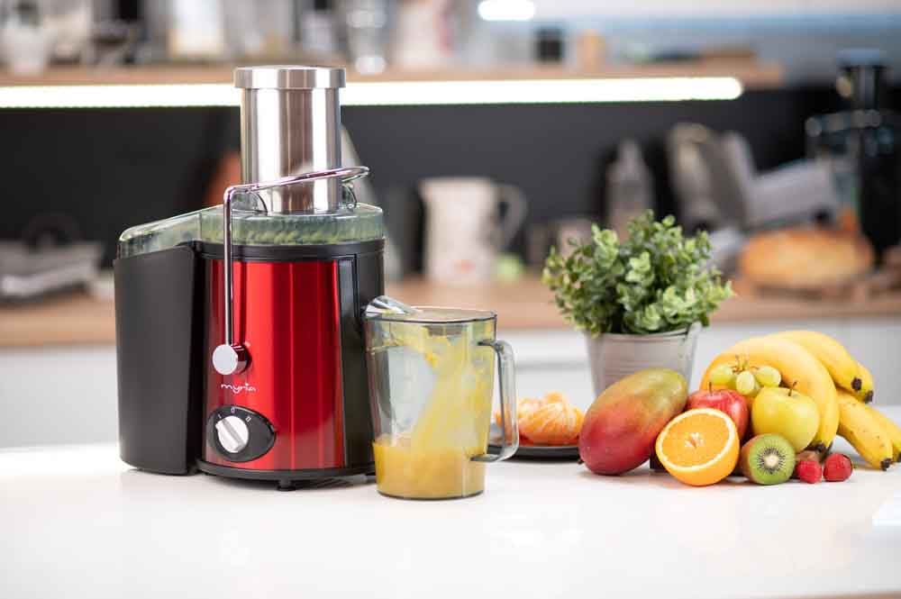 Storcator fructe si legume MYRIA MY4013, 1.1l, 800W, 2 trepte putere, negru-rosu