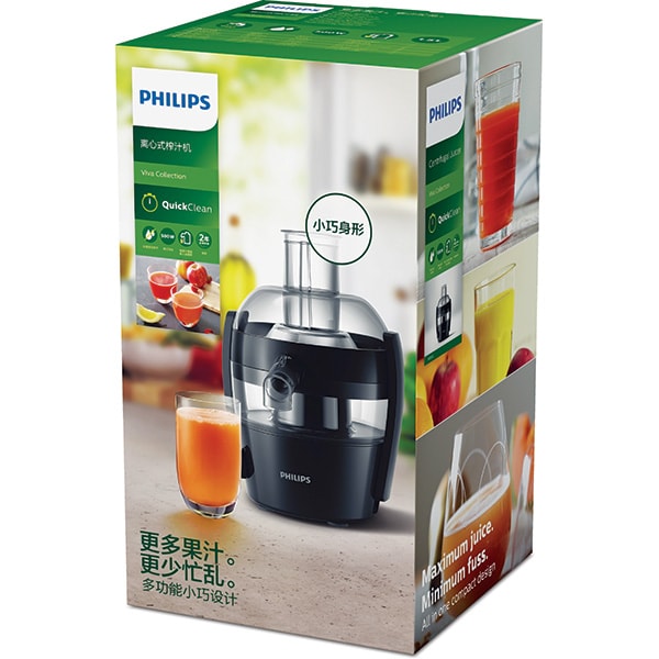 Storcator fructe si legume PHILIPS Viva Collection HR1832/00, 0.5l, 400W, 1 treapta viteza, negru-argintiu