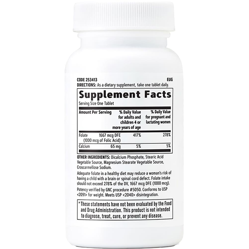 Supliment alimentar Acid Folic 1000 mcg, 100 tablete, GNC