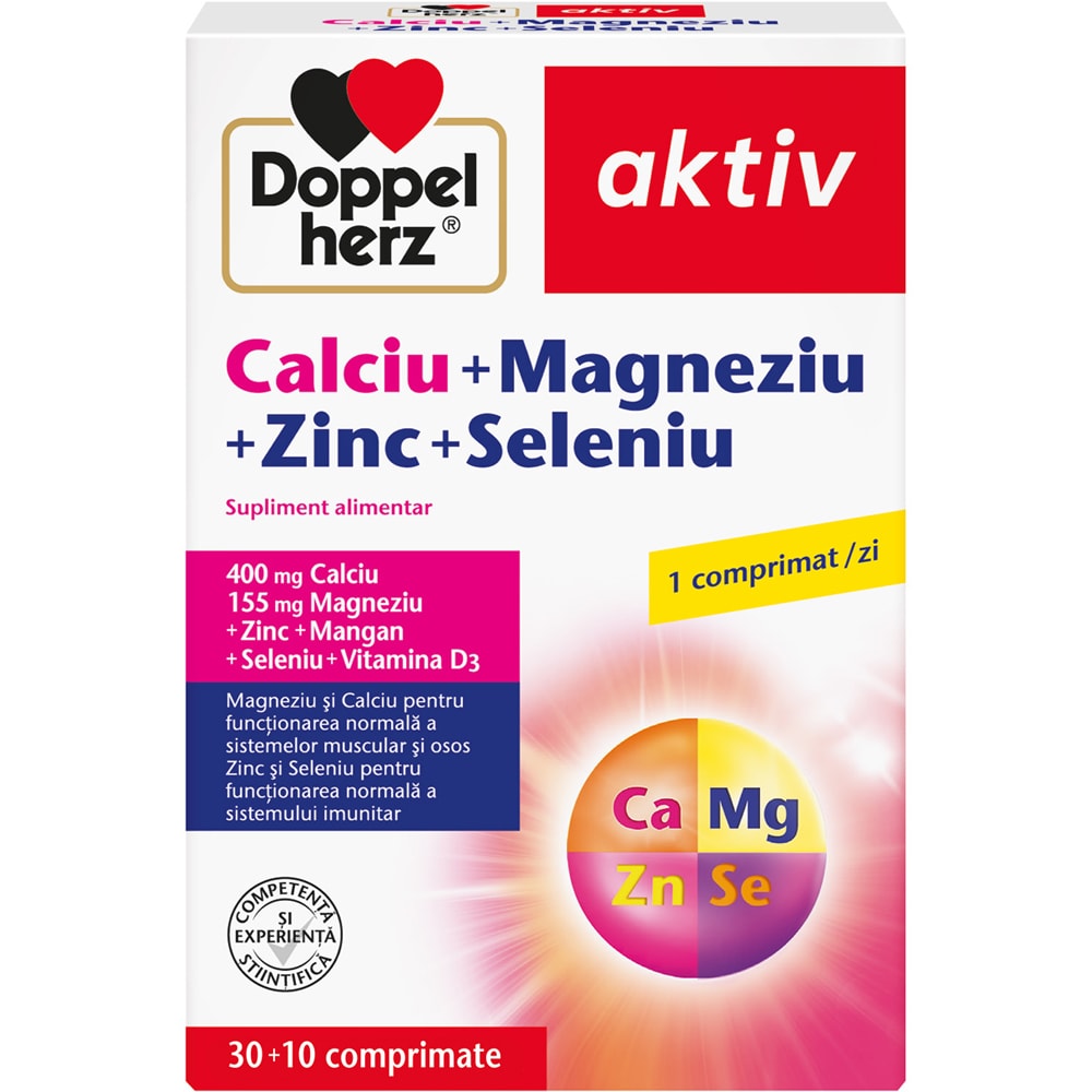 Supliment alimentar Aktiv Calciu + Magneziu + Zinc + Seleniu, 30 + 10 comprimate, DOPPELHERZ