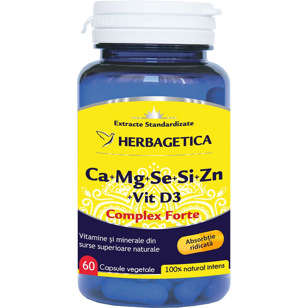 Supliment alimentar Ca+Mg+Se+Si+Zn Organice cu D3, 60 capsule, HERBAGETICA