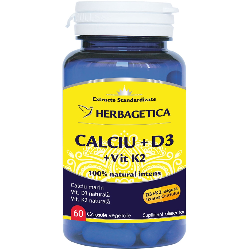 Supliment alimentar Calciu+D3+Vit K2, 60 capsule, HERBAGETICA