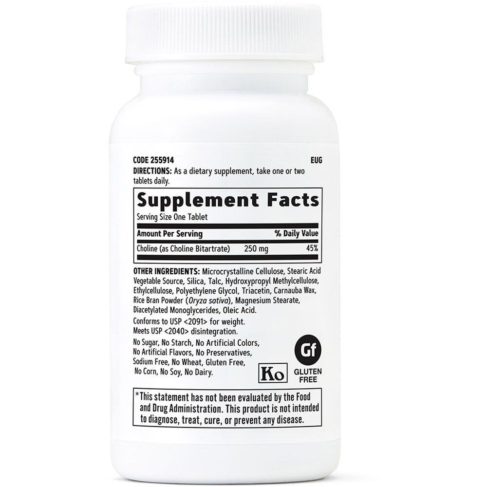 Supliment alimentar Colina 250 mg, 100 tablete vegetale, GNC