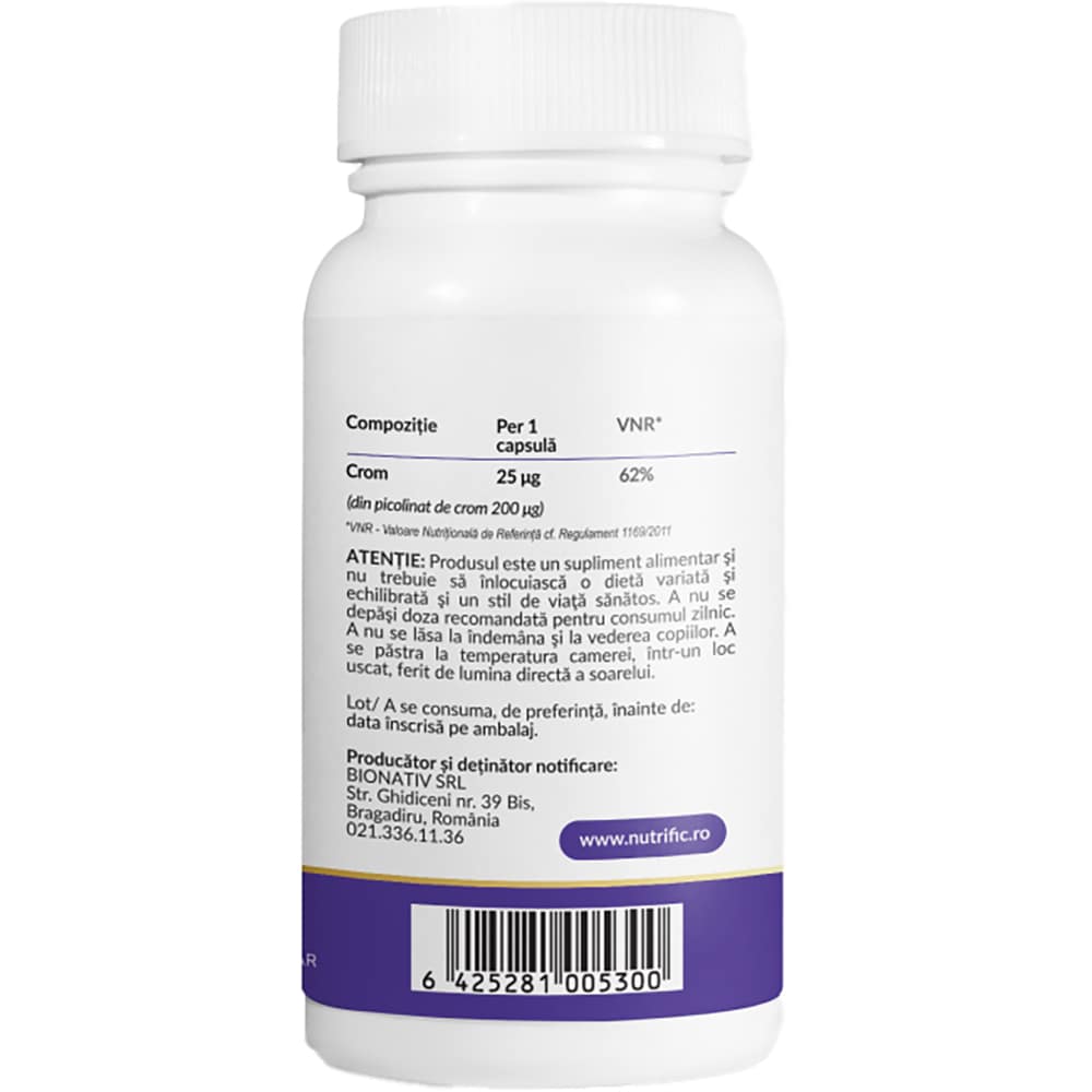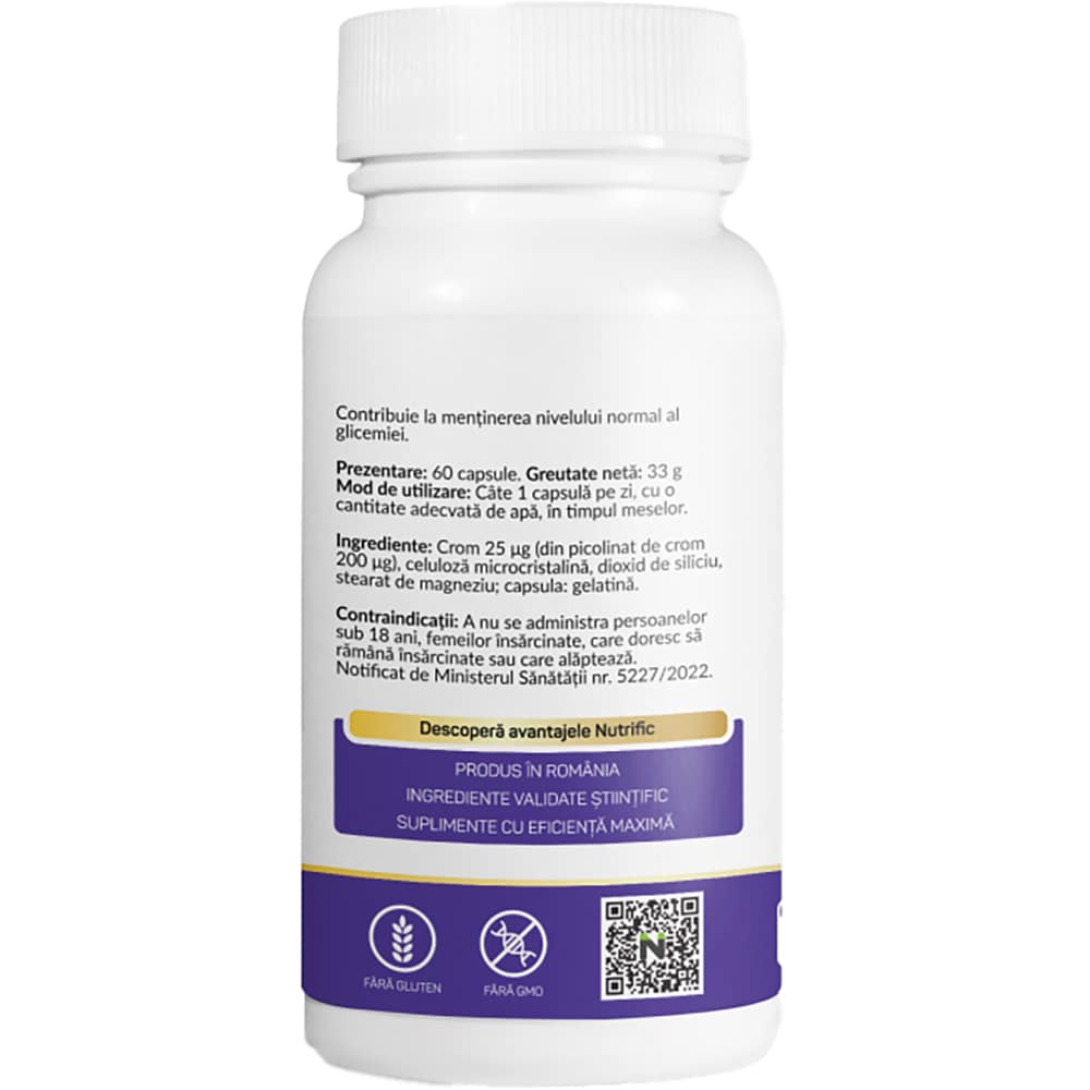 Supliment alimentar Crom Picolinat, 200 mcg, 60 capsule, NUTRIFIC