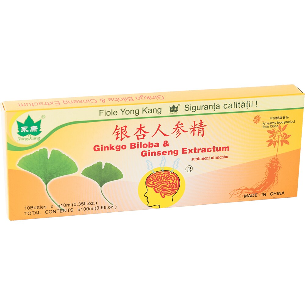 Supliment alimentar Ginkgo Biloba + Ginseng, 10 fiole, YONG KANG