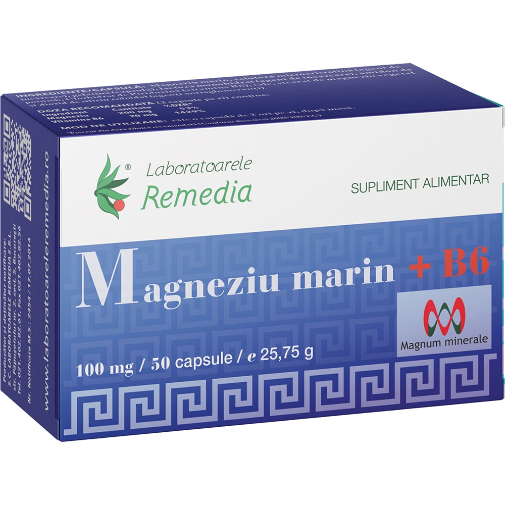 Supliment alimentar Magneziu Marin + B6 100 mg, 50 capsule, LABORATOARELE REMEDIA