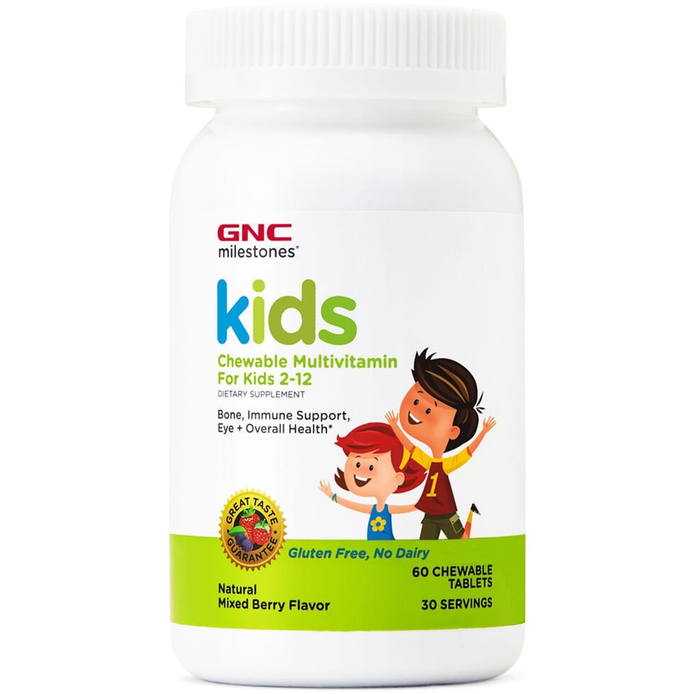 Supliment alimentar Milestones Multivitamine pentru copii 2-12 Ani, aroma de Fructe de Padure, 60 comprimate masticabile, GNC