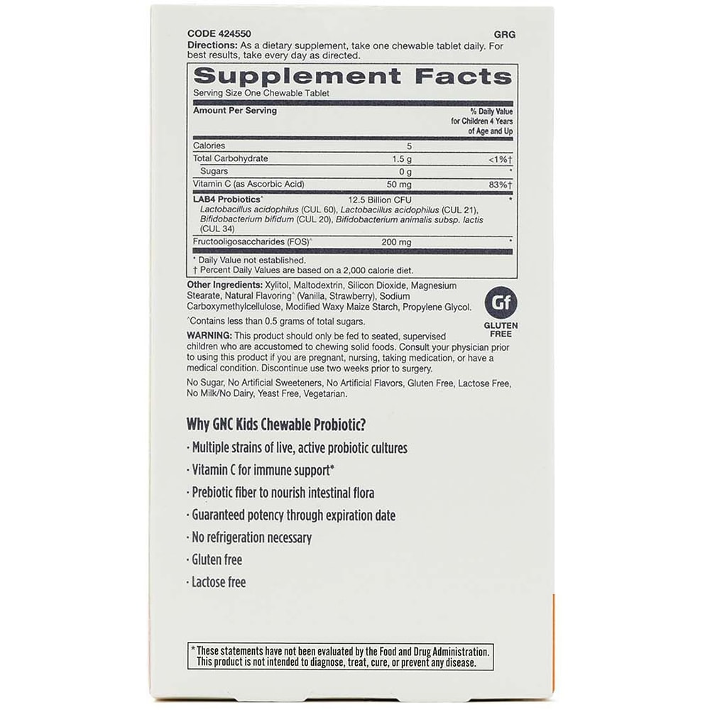 Supliment alimentar Probiotice masticabile pentru copii 4-12 ani Milestones Kids, capsuni, 30 tablete, GNC