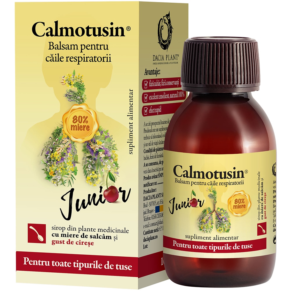 Supliment alimentar Sirop Calmotusin Junior cu gust de Cirese, 100 ml, DACIA PLANT