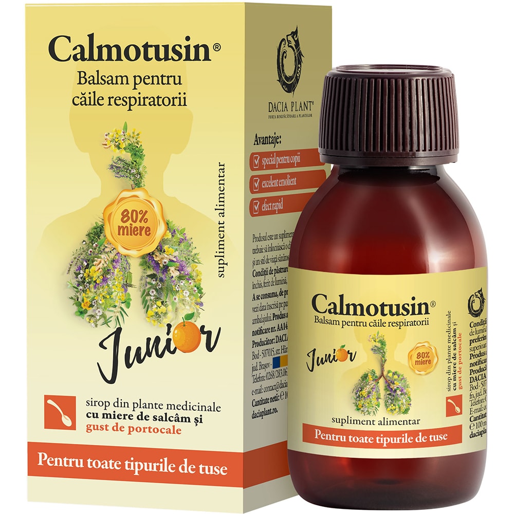 Supliment alimentar Sirop Calmotusin Junior cu gust de portocale, 100 ml, DACIA PLANT