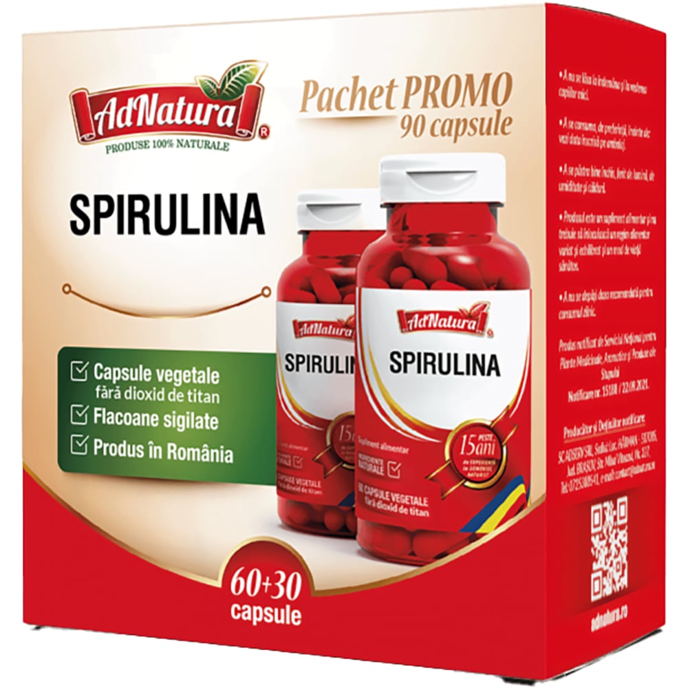 Supliment alimentar Spirulina pachet, 60+30 capsule, ADNATURA
