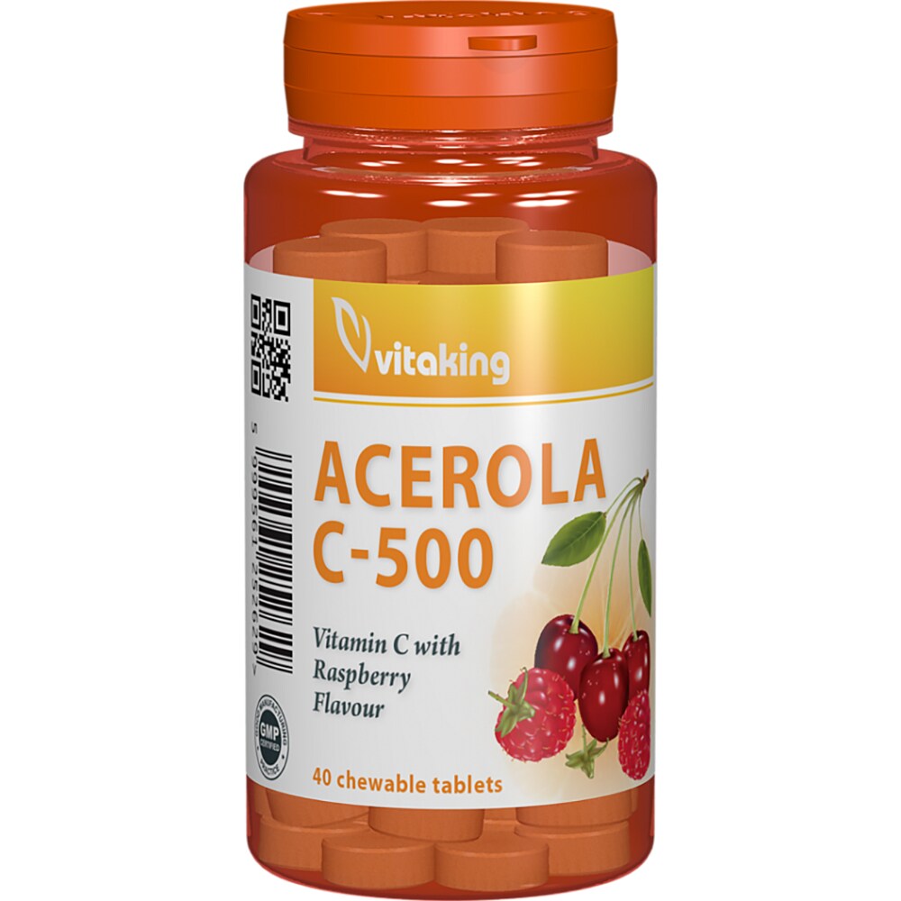 Supliment alimentar Vitamina C 500 mg cu Acerola, gust de zmeura, 40 comprimate masticabile, VITAKING