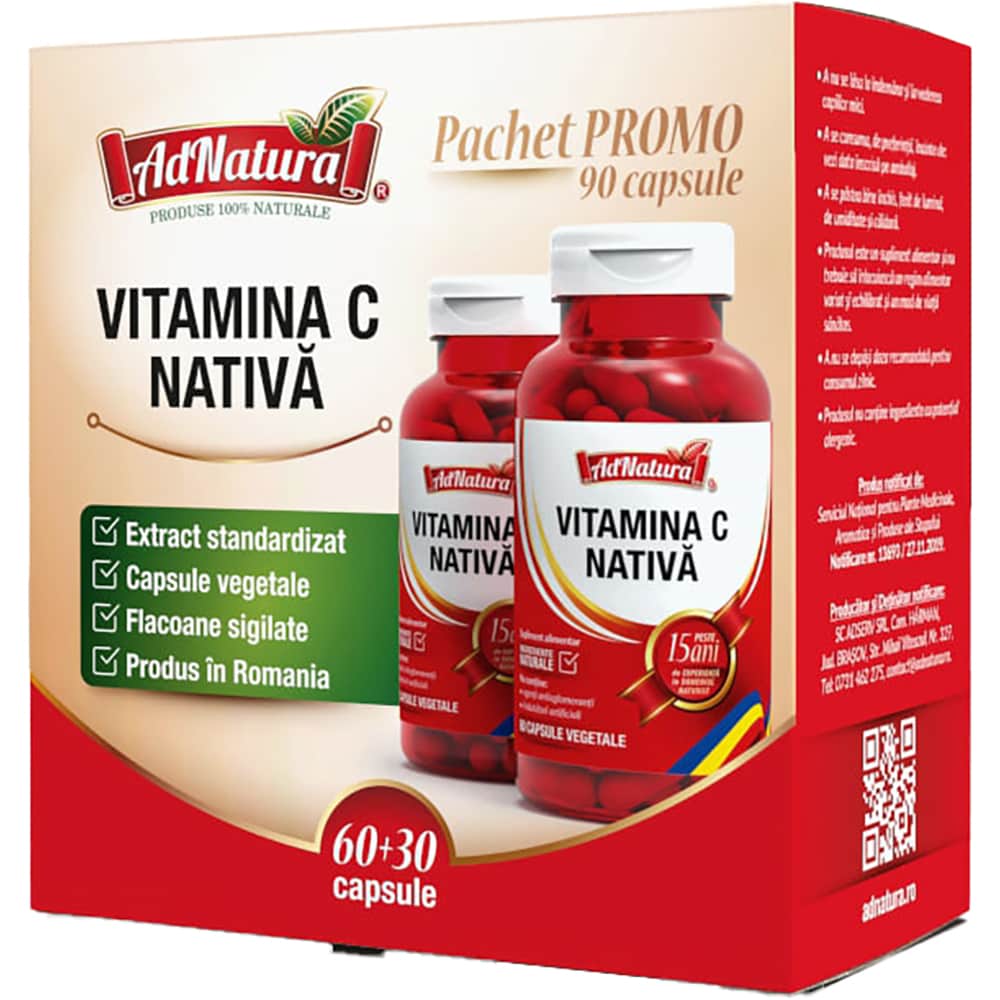 Supliment alimentar Vitamina C Nativa pachet, 60+30 capsule, ADNATURA