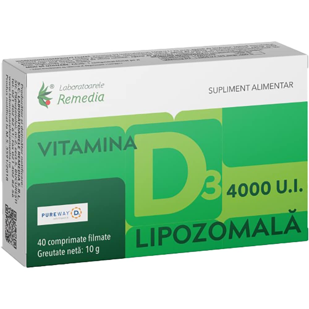 Supliment alimentar Vitamina D3 4000UI Lipozomala, 40 comprimate filmate, LABORATOARELE REMEDIA