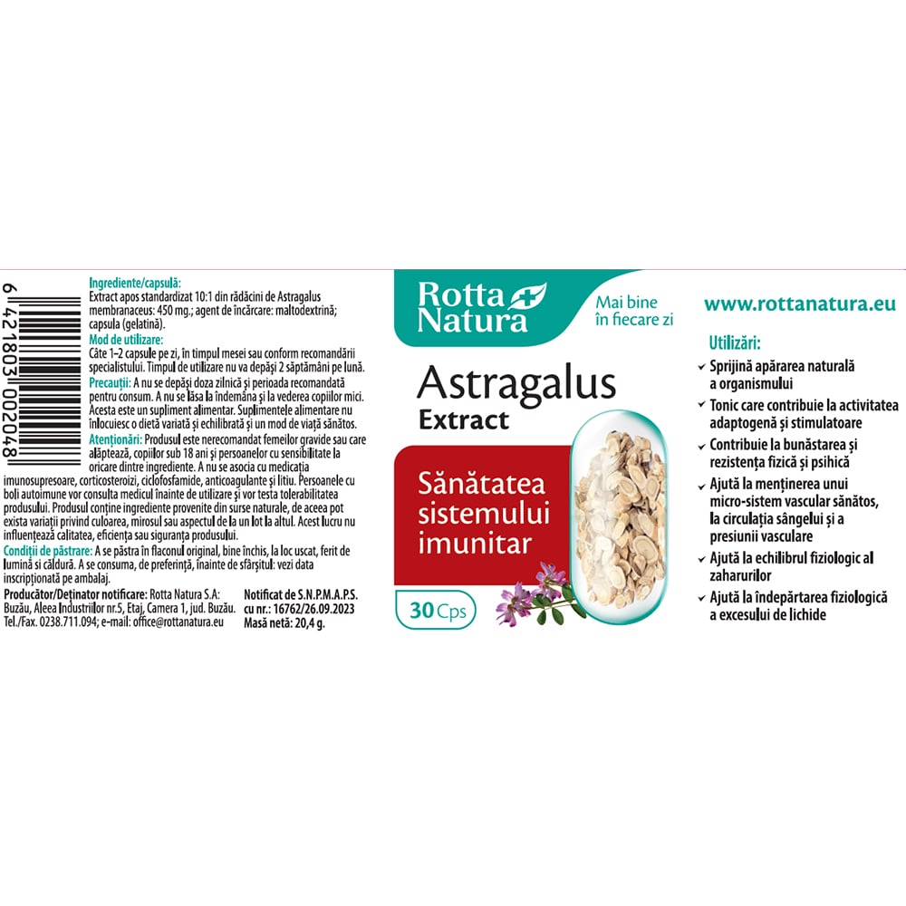 Supliment Astragalus Extract, 30 capsule, ROTTA NATURA