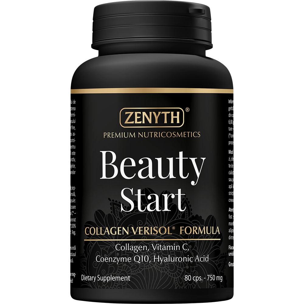 Supliment Beauty Start Colagen + Vit C + Coenzima Q10 + Hialuronat Sodiu, 80 capsule, ZENYTH