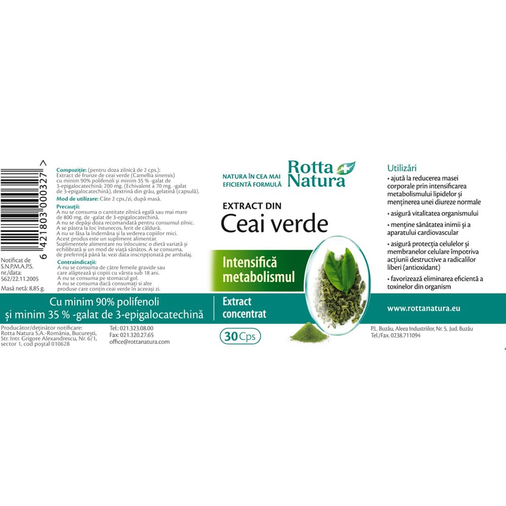 Supliment Ceai Verde Extract, 30 capsule, ROTTA NATURA