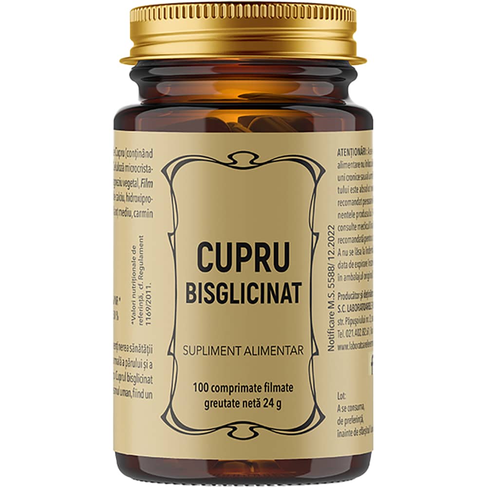 Supliment Cupru Chelat Bisglicinat, 100 comprimat, LABORATOARELE REMEDIA
