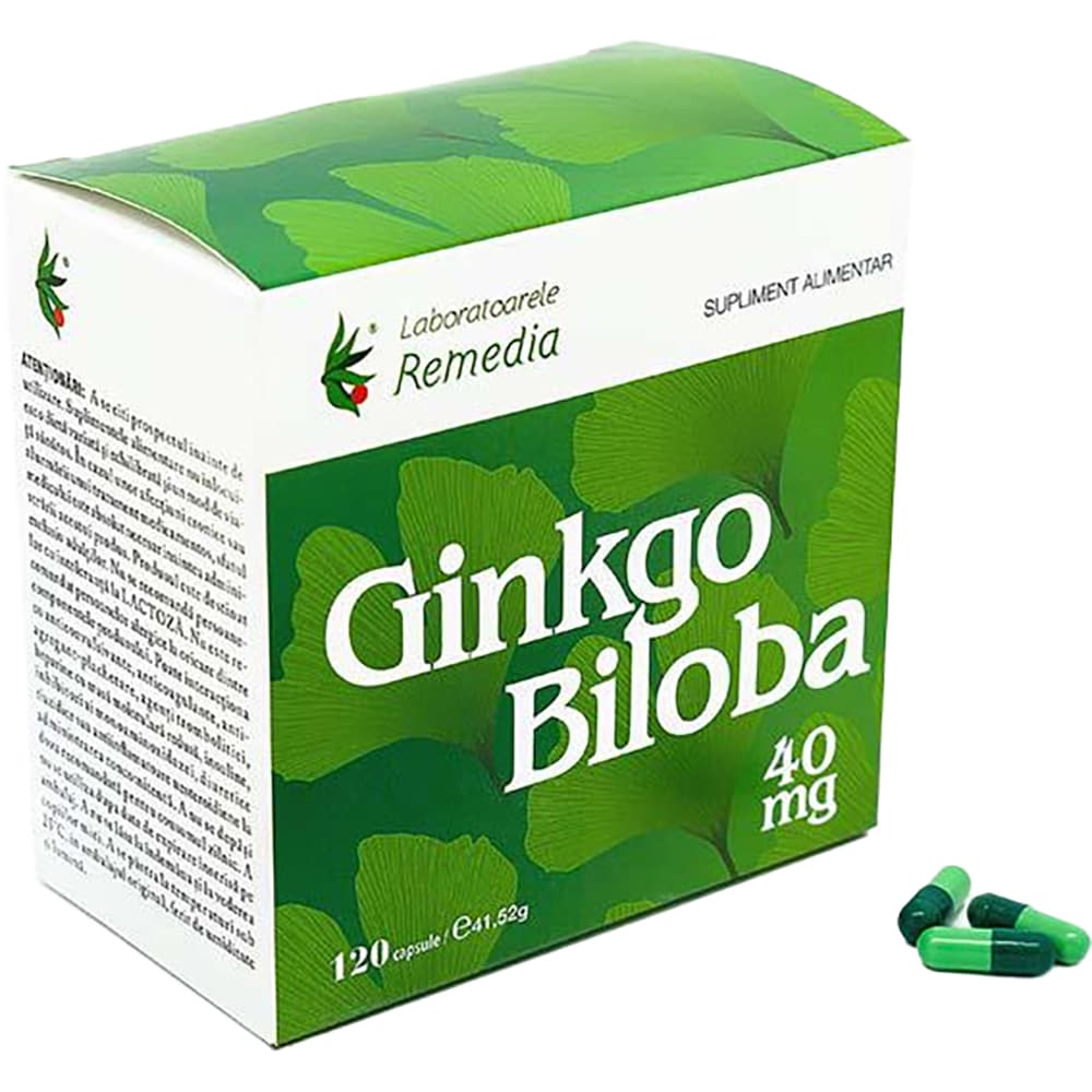 Supliment Ginkgo Biloba 40 mg, 120 capsule, LABORATOARELE REMEDIA