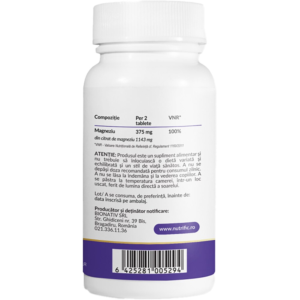 Supliment Magneziu Citrat 375mg, 60 tablete, NUTRIFIC