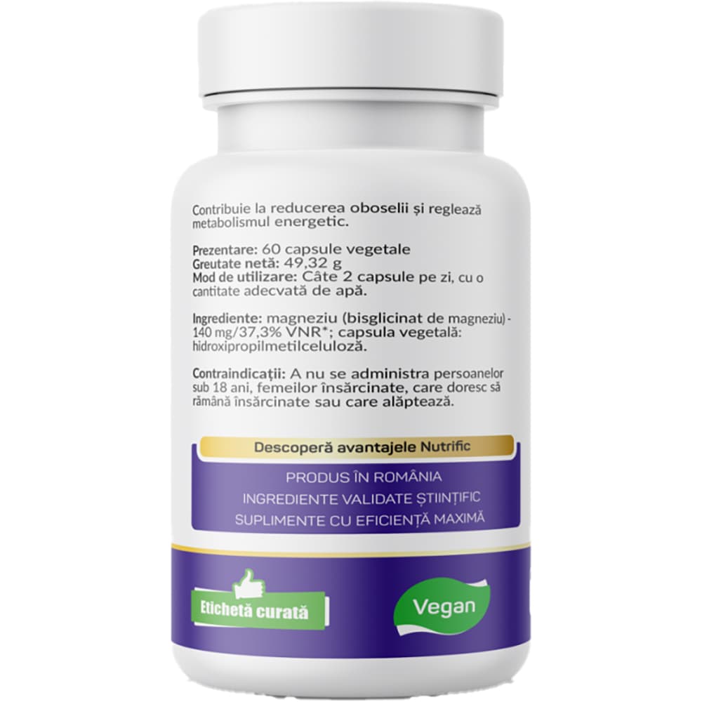 Supliment Magneziu Glicinat Optim, 60 capsule, NUTRIFIC