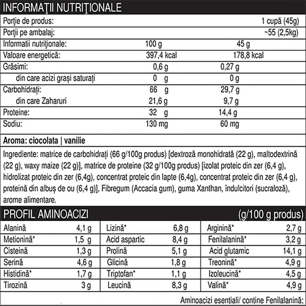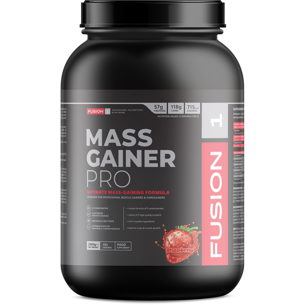 Supliment pentru cresterea masei musculare Pro, capsuni, 2.5 kg, NATURAL PLUS