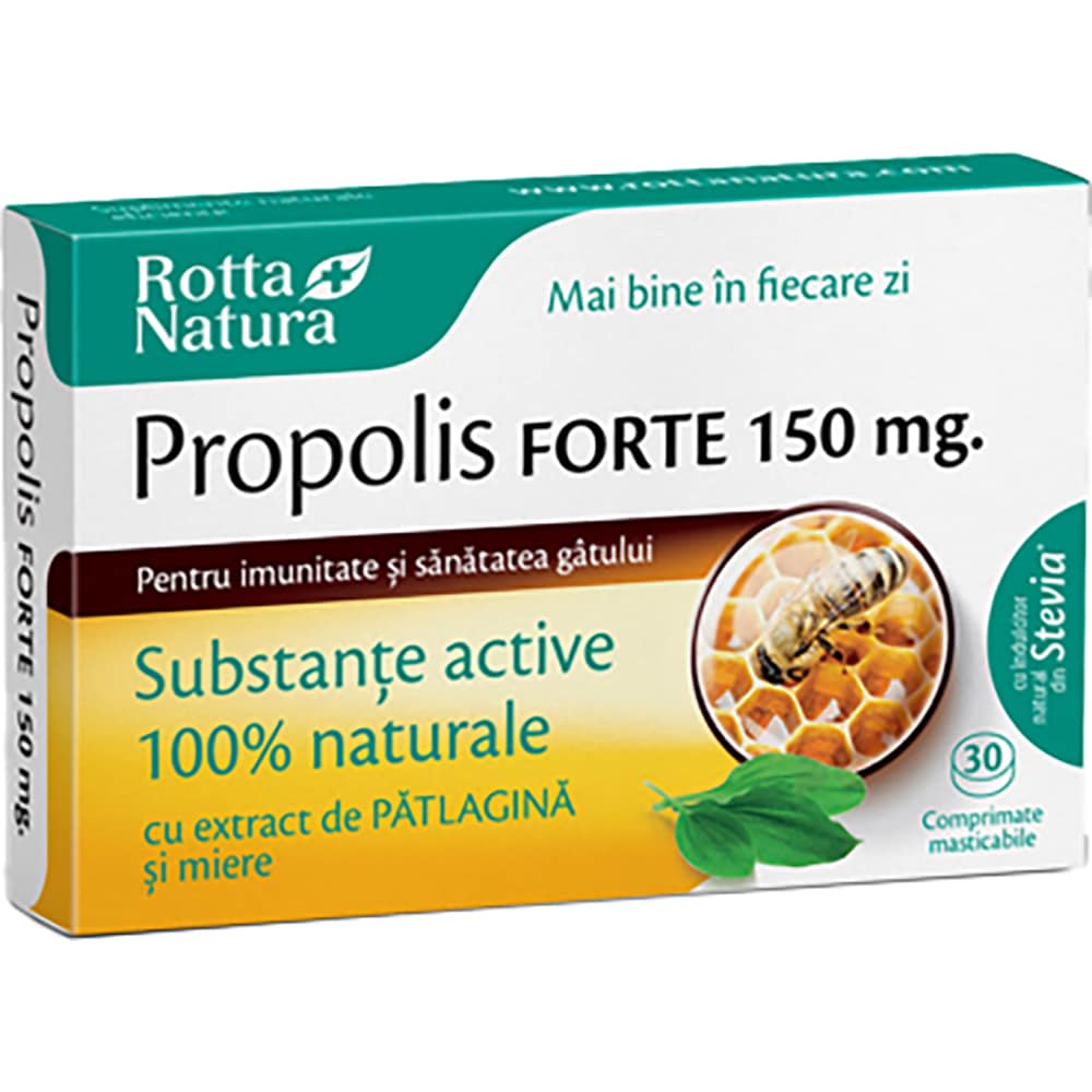 Supliment Propolis Forte cu Patlagina, 30 comprimate masticabile, ROTTA NATURA