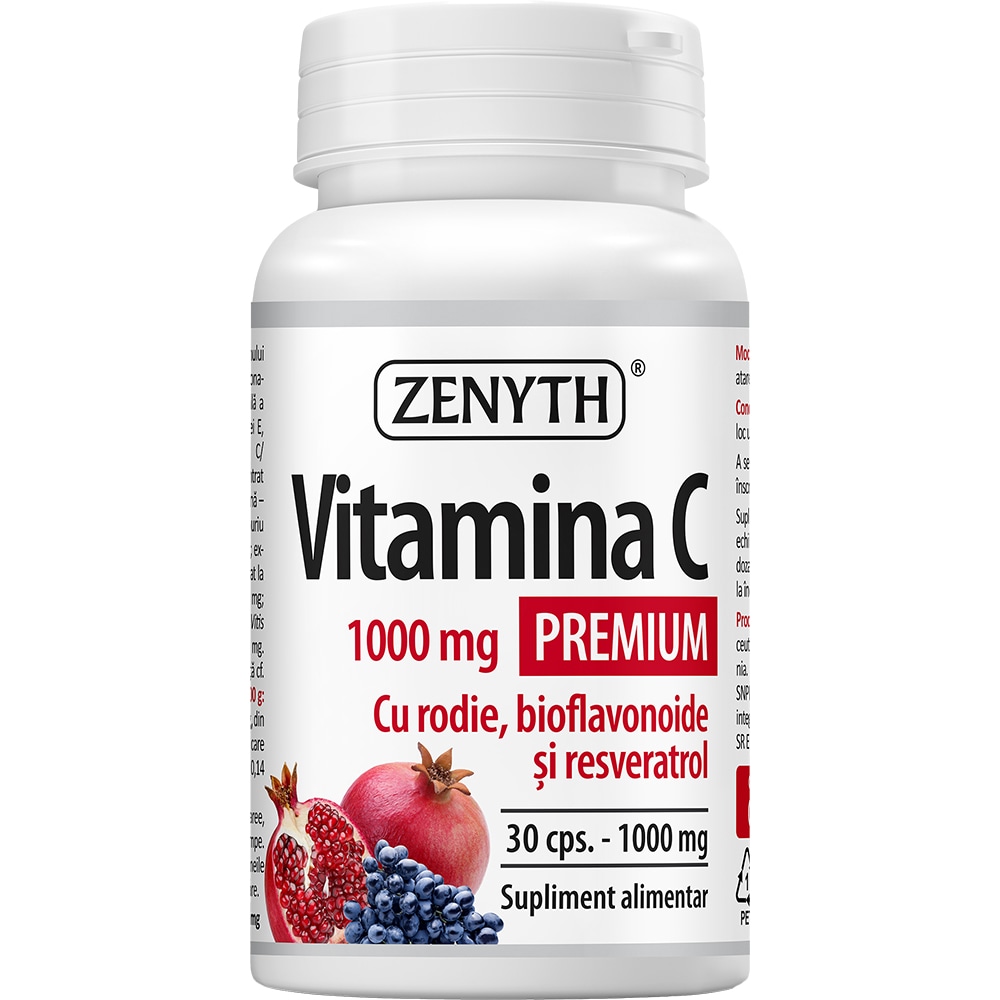 Supliment Vitamina C Premium cu Rodie Bioflavonoide si Resveratrol, 30 capsule, ZENYTH