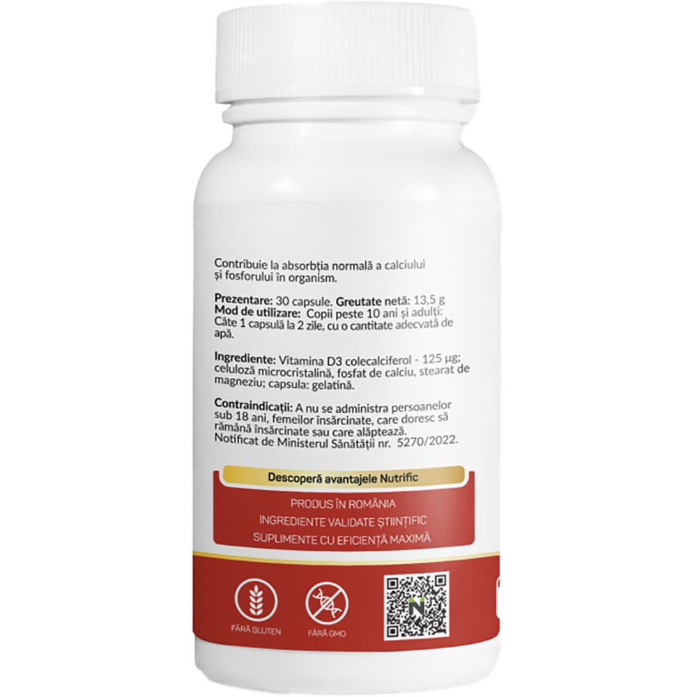 Supliment Vitamina D3 Ultra 5000IU, 30 capsule, NUTRIFIC