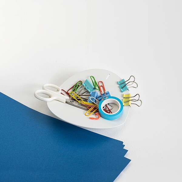 Suport accesorii birou SPIN Slide Circle, metal-lemn, alb