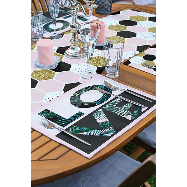 Suport farfurii si napron Geometric 1, 35 x 45 cm, 35 x 140 cm, 4 + 1 bucati, multicolor