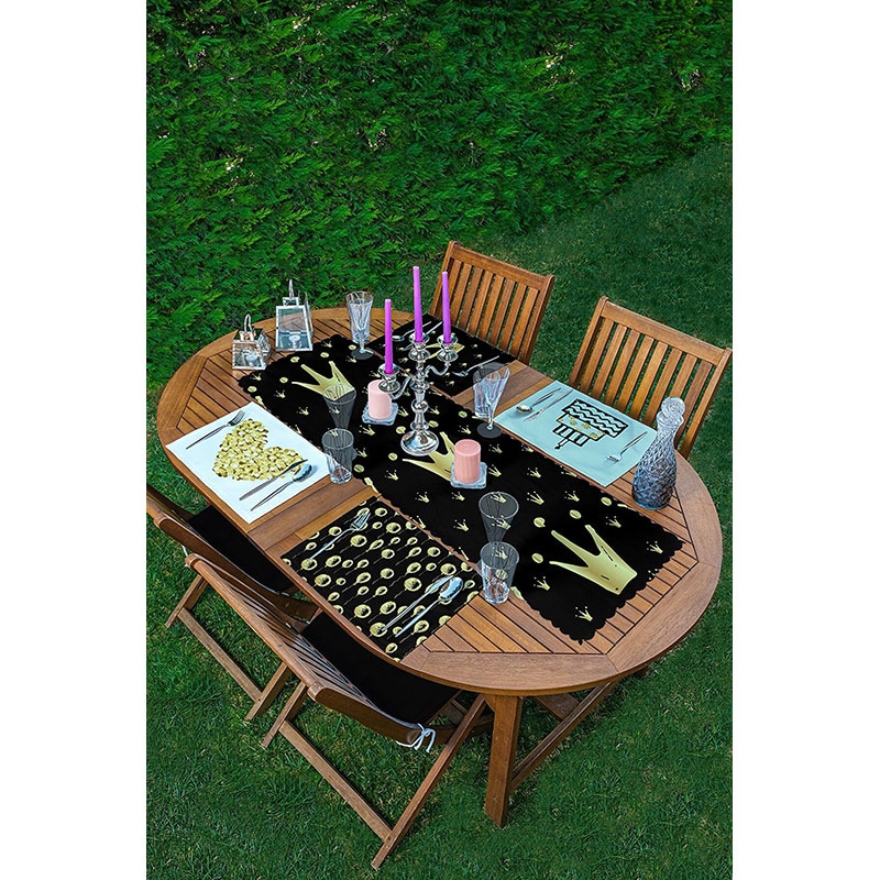 Suport farfurii si napron Gold&Black, 35 x 45 cm, 35 x 140 cm, 4 + 1 bucati, multicolor