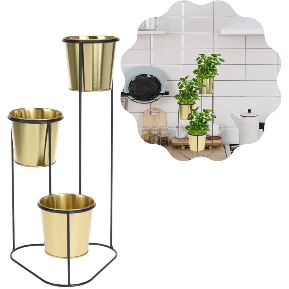 Suport ghiveci flori KI QD1000550, metal, 23.5 x 22 x 46.5 cm, auriu