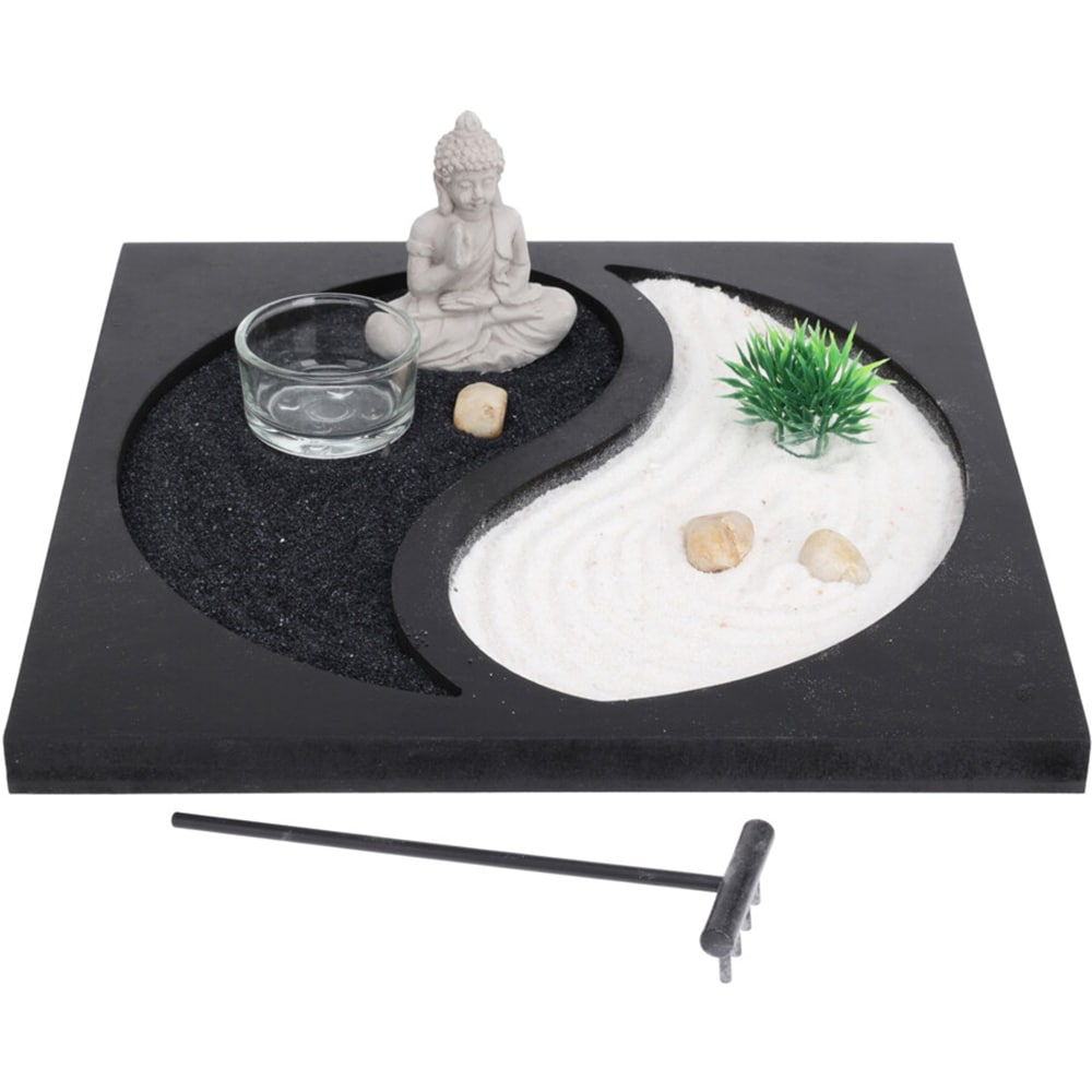 Suport lumanare Buddha Zen Garden, 23 x 23 x 7 cm, 10 piese, multicolor