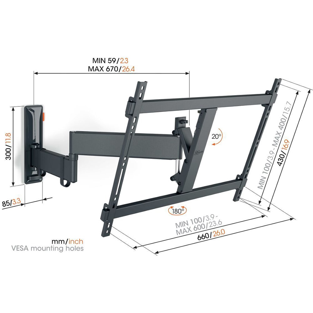Suport TV perete VOGEL'S TVM 3643, reglabil, 40-77", 35kg, negru