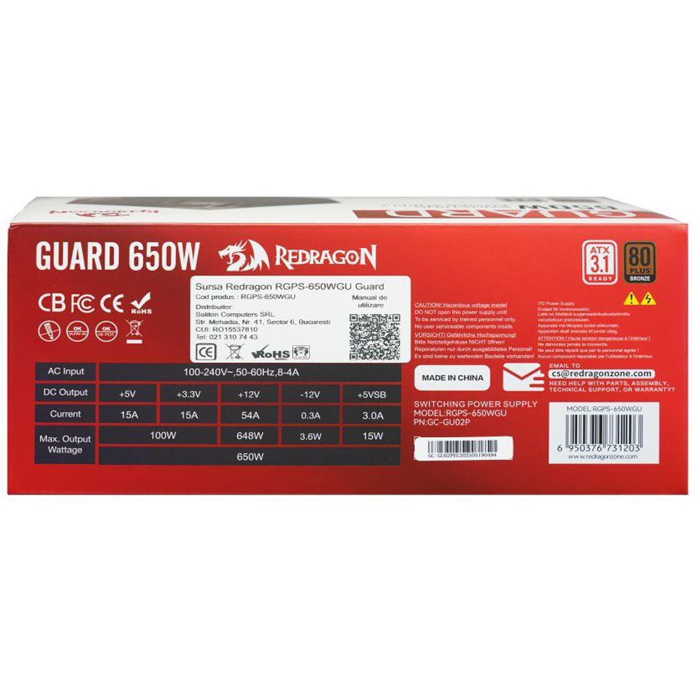 Sursa de alimentare REDRAGON RGPS-650WGU Guard, 650W, 120mm, 80 PLUS Bronze