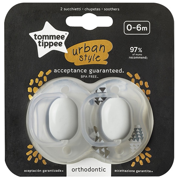 Suzeta ortodontica TOMMEE TIPPEE Urban, 0 - 6 luni, 2 buc, alb - transparnt