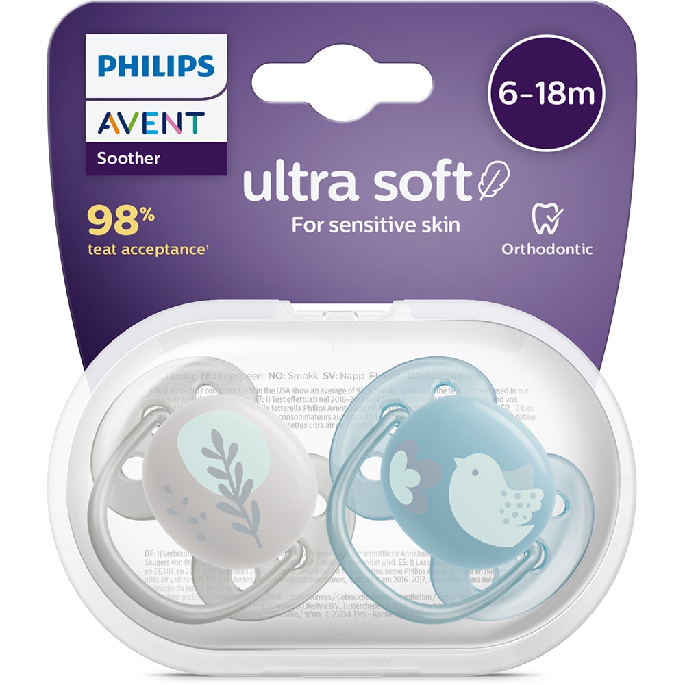 Suzeta PHILIPS AVENT Ultra Soft SCF091/15, 6-18 luni, 2 buc, gri-albastru